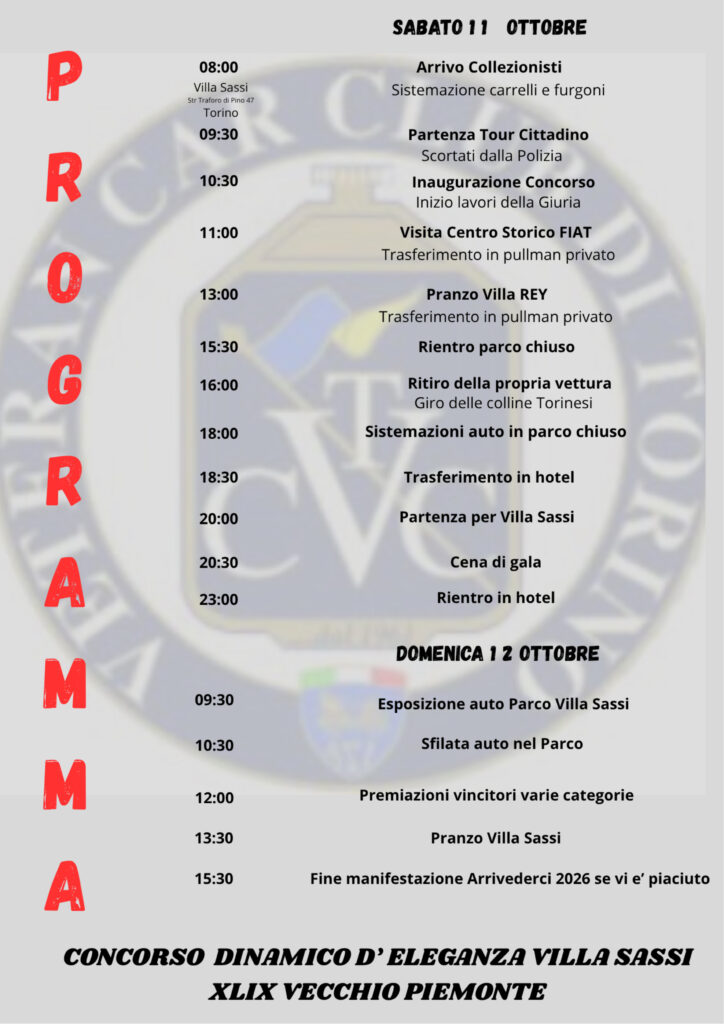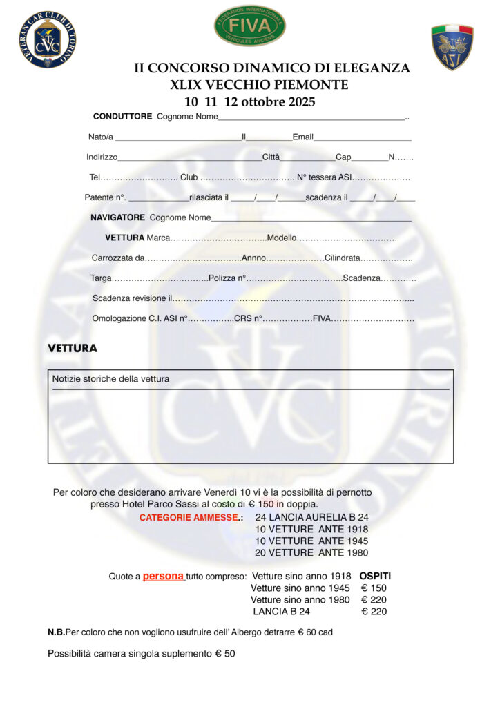 VECCHIO PIEMONTE 10-12 OTTOBRE 2025 Concorso di Eleganza dinamico (evento a Calendario ASI)
